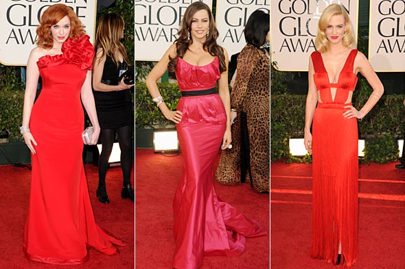Love these 3 dresses. I always love voluptuous Women, so anything I see them in I will like. January Jones' dress (on right) is quite different, but it's great. I love the color of the red, her hair was perfect, her lips were too, and she has a body to pull this off.